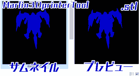 .stlはMarlin3DprinterToolというソフトをインストールすることでサムネイルを表示させることができます。