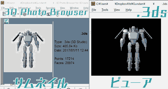 - .3dsは3D Photo Browserというファイルマネージャで表示することができます。