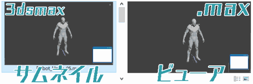 - サムネイルが表示できるのは、お使いのPCとファイルサイズによって変動します。(例:.blend .max)