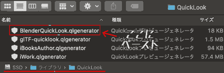 正式名称はQuick Look プレビュージェネレータ. またはApple Quicklook Plug-in. と呼ばれるものです。 .qlgeneratorのファイルがあることで、Finderのプレビューでサムネイルを表示することができます。